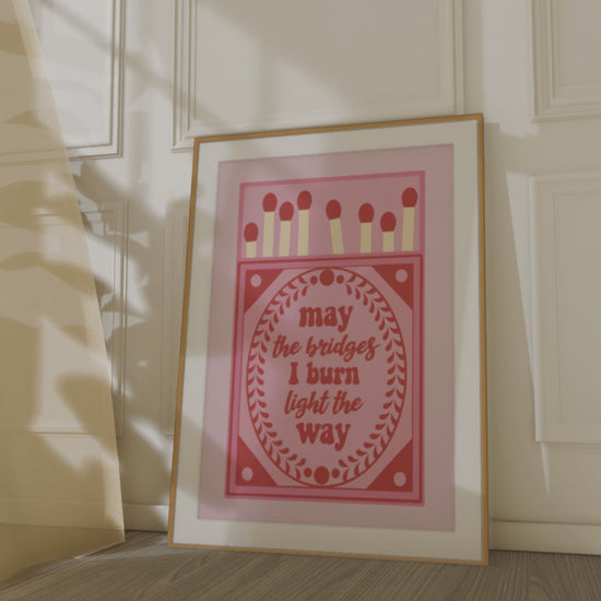 Some words deserve to be framed like spells, and this print is one of them. “May the bridges I burn light the way” isn’t just a quote, it’s a war cry. It’s the kind of mantra you hang on your wall when you’re done shrinking, when you’re ready to let the past fuel your next chapter.